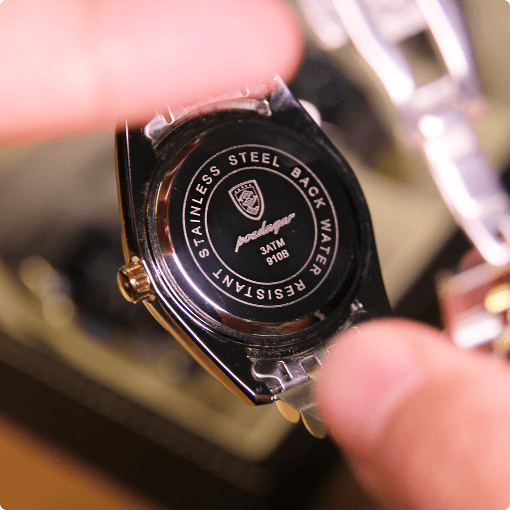 At Poedagar, we believe in the impeccable quality and exceptional craftsmanship of our watches. Every Poedagar GoldenStar is a precision piece, carefully designed to accompany you on every occasion. We offer a 12-month warranty, a full year of peace of mind.